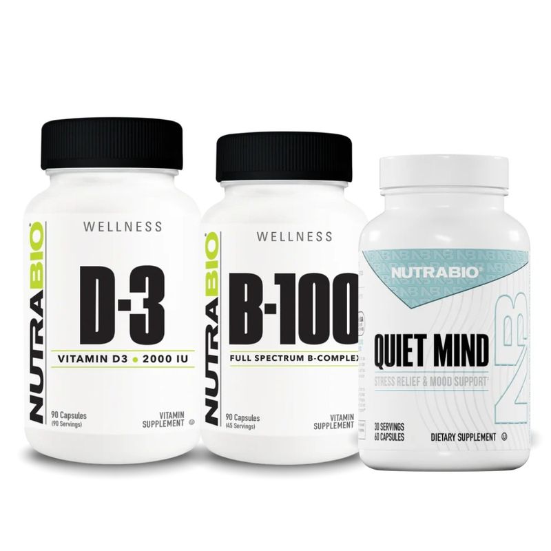 Combo NutraBio Enfoque y Cero Estrés es un pack diseñado para apoyar el equilibrio mental, mejorar la concentración y reducir el impacto del estrés en la rutina diaria. Este combo incluye Quiet Mind para favorecer la calma y el enfoque, Complejo B-100 para apoyar el sistema nervioso y el metabolismo energético, y Vitamina D3 para contribuir al bienestar general y al correcto funcionamiento del organismo. Esta combinación es ideal para personas con jornadas exigentes, alta carga mental o que buscan rendir mejor en su día a día con mayor claridad y estabilidad. Es una excelente opción para quienes desean mantener un buen estado mental, más energía y un mejor equilibrio emocional de forma constante.