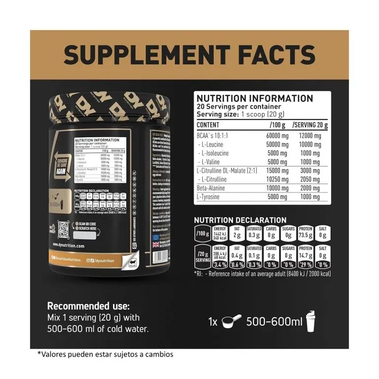 Potencia tu rendimiento y acelera tu recuperación con DY HIT BCAA 10:11, la fórmula avanzada de aminoácidos de ramificación (BCAA) desarrollada por Dorian Yates, uno de los culturistas más reconocidos del mundo. Su proporción de leucina, isoleucina y valina 10:1:1 ofrece una dosis superior de leucina, el aminoácido clave para estimular la síntesis de proteínas y promover el crecimiento muscular.