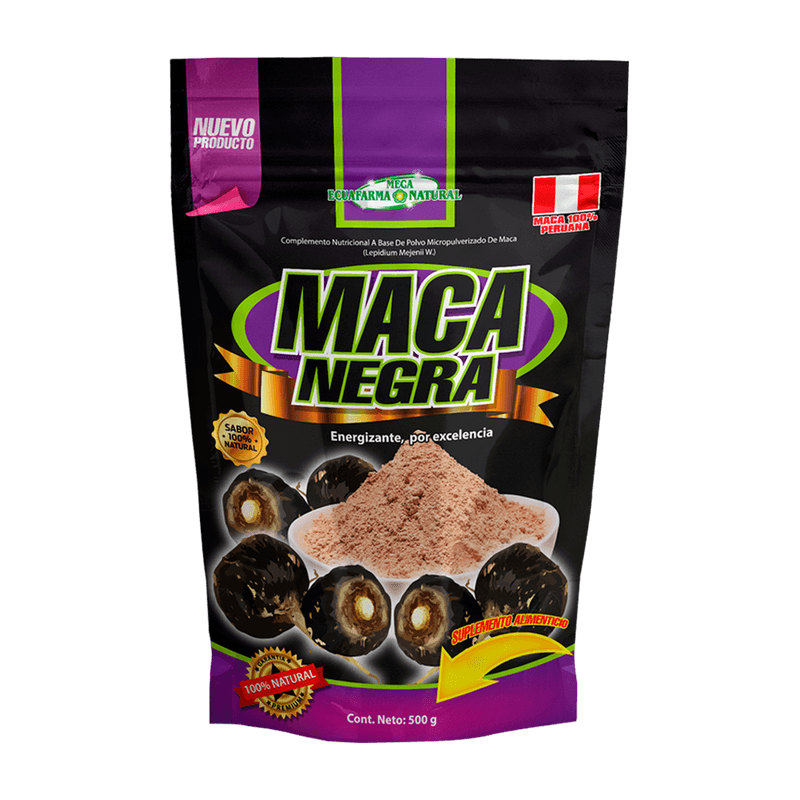 Maca negra en polvo, reconocida por sus propiedades energizantes, hormonales y adaptógenas. Ayuda a mejorar la vitalidad, resistencia física y equilibrio hormonal tanto en hombres como en mujeres. Puede mezclarse con batidos, jugos o alimentos. Producto 100% natural sin aditivos. Su presentación de 500 gramos es ideal para consumo frecuente y prolongado.