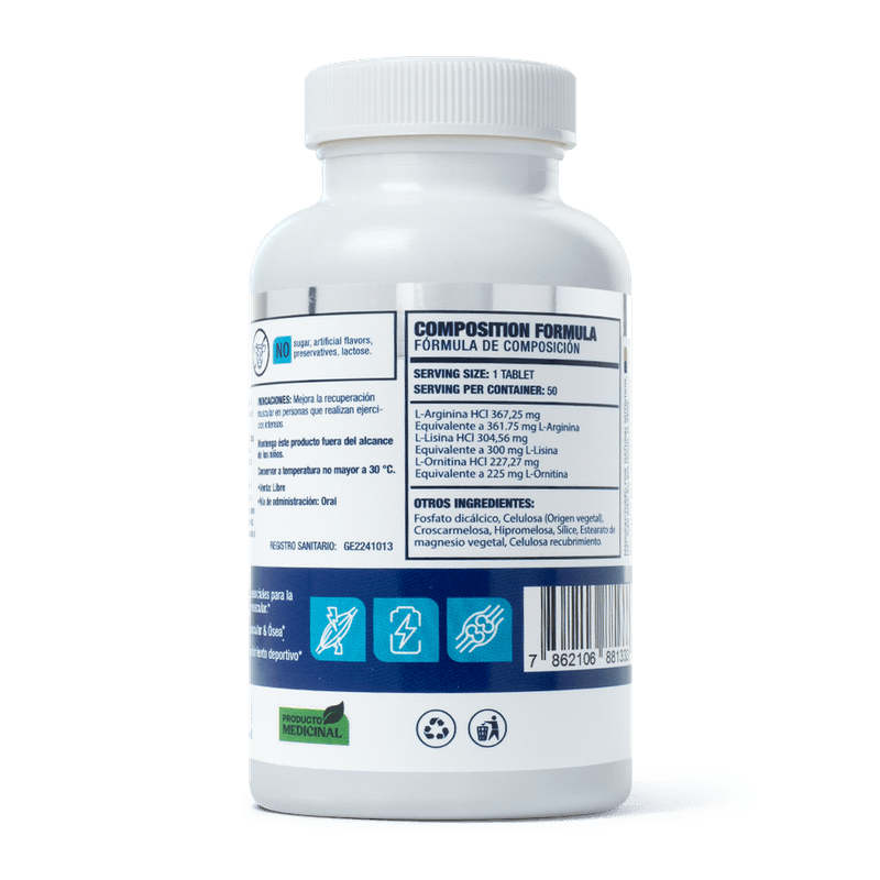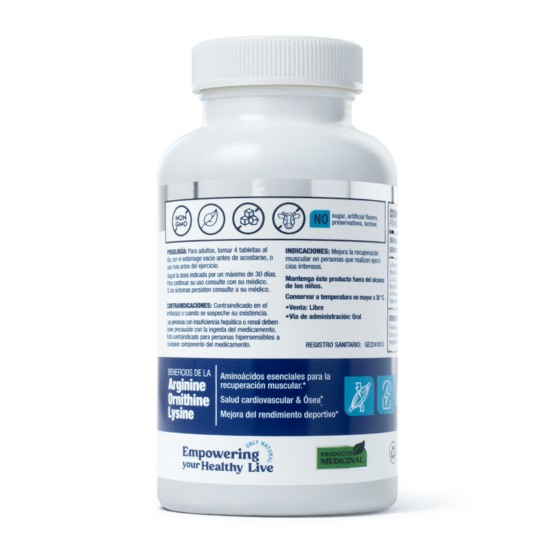 Suplemento que combina L-Ornitina, L-Arginina y L-Lisina, tres aminoácidos esenciales que favorecen el crecimiento muscular, la recuperación y la producción de óxido nítrico. Es ideal para quienes practican deportes de alta intensidad, ya que ayuda a reducir el cansancio y a mejorar el rendimiento en entrenamientos. También apoya la salud cardiovascular y fortalece el sistema inmunológico. Perfecto para quienes buscan una recuperación más rápida y una mayor energía durante el ejercicio.
