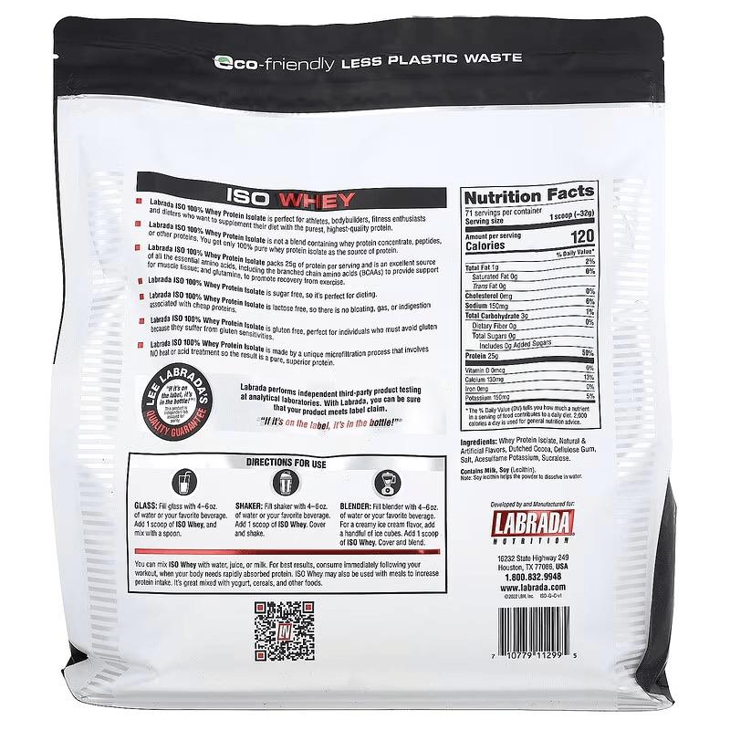 Labrada Nutrition ISO Whey 5 lbs concentrado de proteína aislada de suero con sabor vainilla, frutilla y chocolate, diseñado para proporcionar una fuente de proteína rápida y altamente absorbible. Ideal para consumo post-entrenamiento, Iso Whey de Labrada contribuye a mantener un balance positivo de nitrógeno, lo que favorece el crecimiento y mantenimiento muscular en regímenes intensivos.